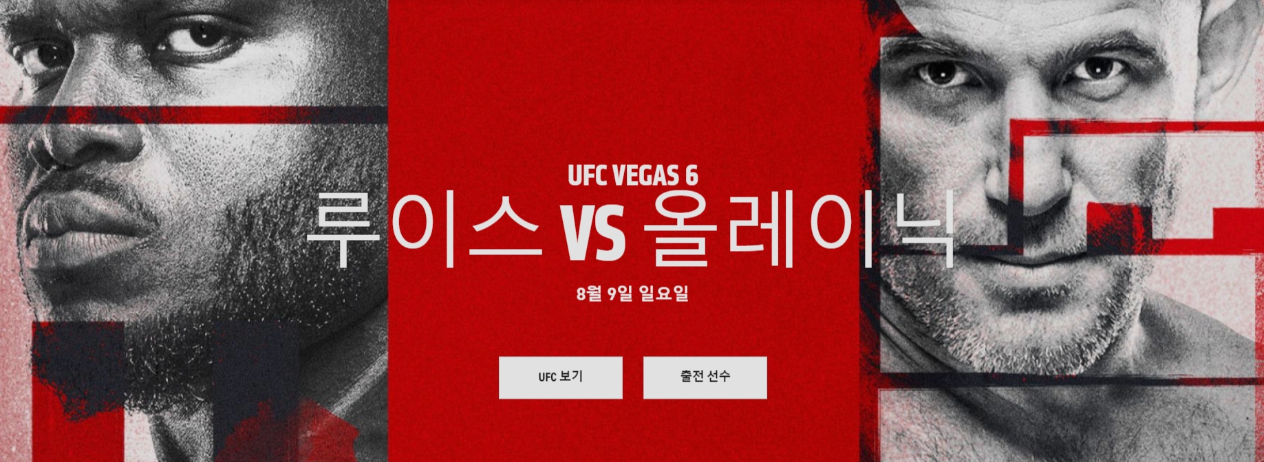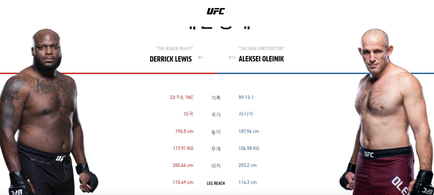 8월 9일 일요일에 헤비급 데릭 루이스와 알렉세이 올레이닉의 경기가 있을 예정입니다. 오전 10시에 ufc 파이트 나이트 경기가 치러집니다. ufc 중계 일정과 선수 전적에 대해 아래에서 알아보도록 하겠습니다.