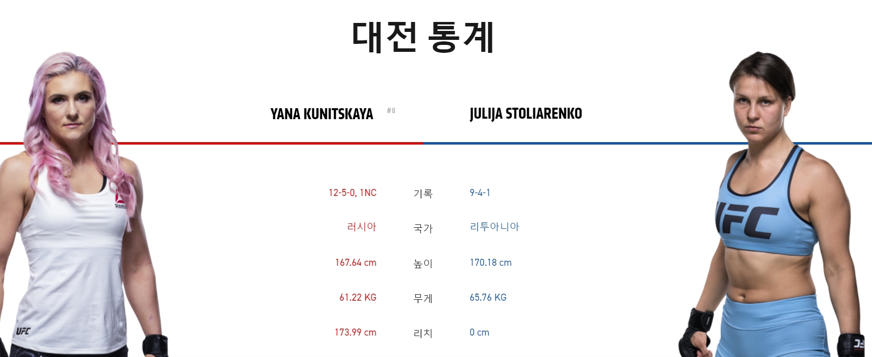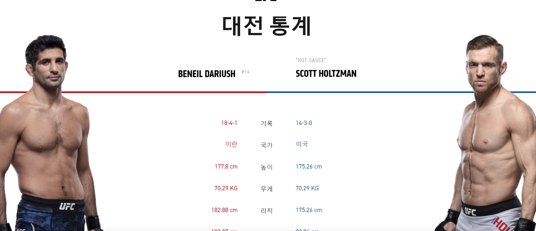 ufc 중계일정 및 선수 전적