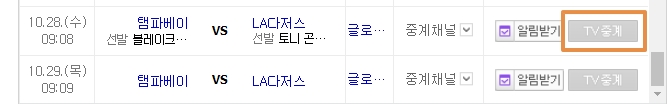 10월 28일 수요일 09:08am 탬파베이 VS LA다저스